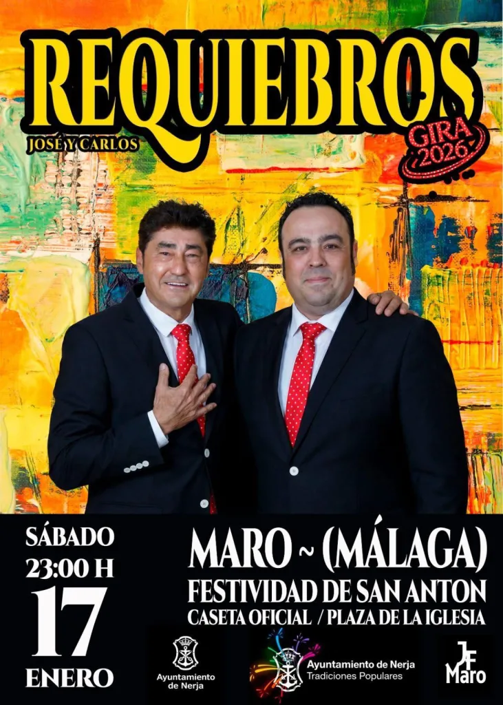 On Saturday 17th, the main day of the festival, the programme starts with a traditional Mass at noon at the Church of Our Lady of Wonders. From 2:00 pm, live music and dancing will fill Maro Square, featuring performances by Alalba, Christian David Callejón, Ángela Muñoz, and the Nerja and Maro Folk Dance Group, along with a free hot chocolate offered to attendees.