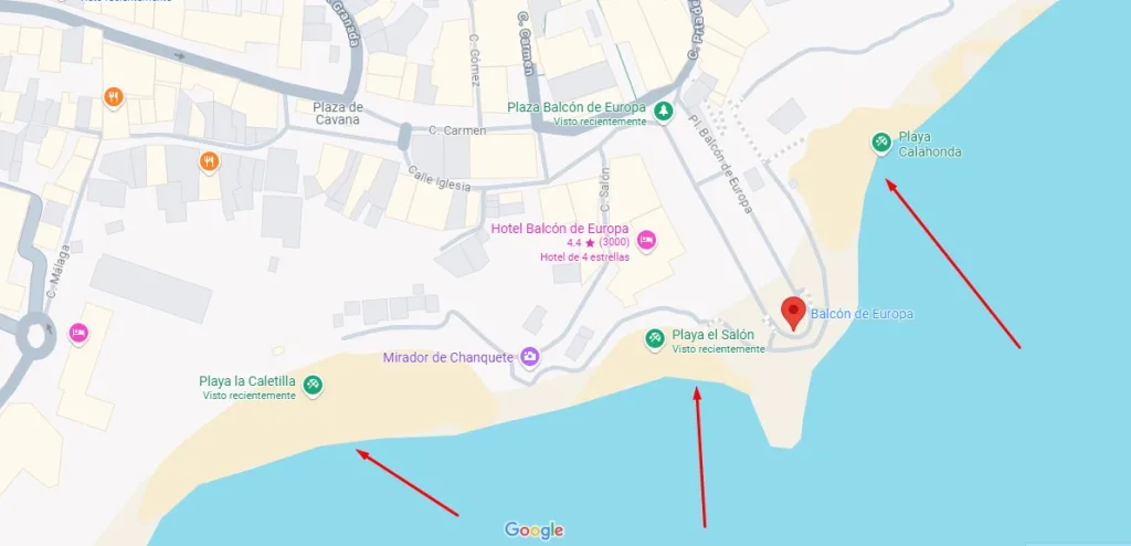 Within walking distance from the Balcón de Europa, you can find several beaches, such as Playa de Calahonda and Playa de el Salon, where you can swim, sunbathe or practice water sports. These are the two closest beaches. But the rest of Nerja’s beaches are just a 10-minute walk from the Balcón de Europa. Playa Torrecilla, Burriana, Carabeo, etc.