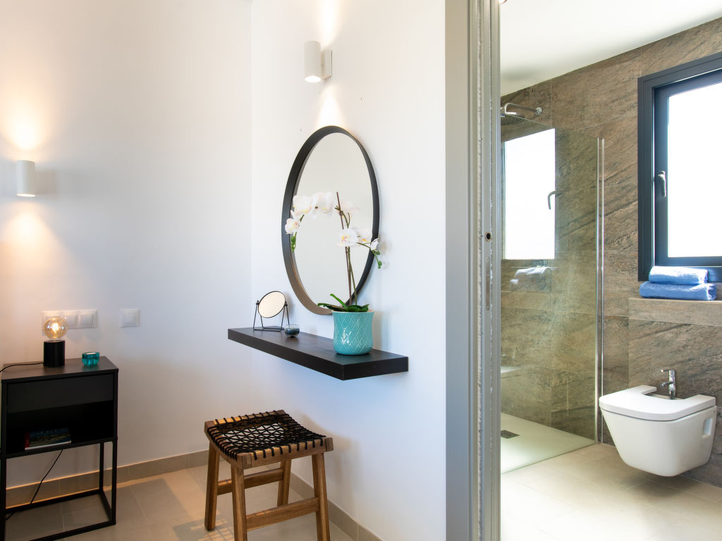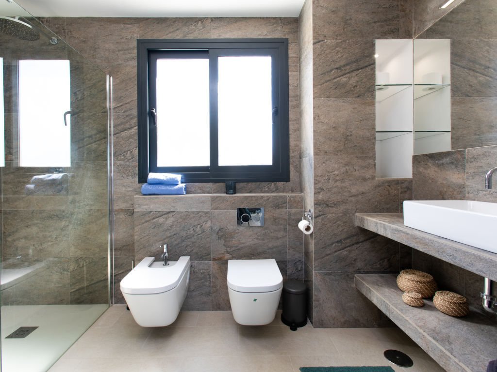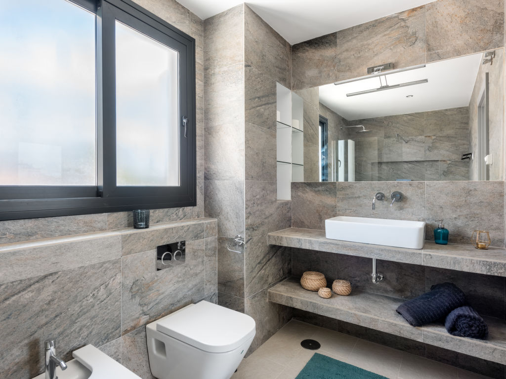 On the ground floor: 1 room. with 2 beds (90 cm, length 200 cm). 1 bed. with 1 double bed (180 cm, length 200 cm), shower/WC. Living room. Exit to the terrace, to the pool. 1 bed. with 1 double bed (180 cm, length 200 cm).