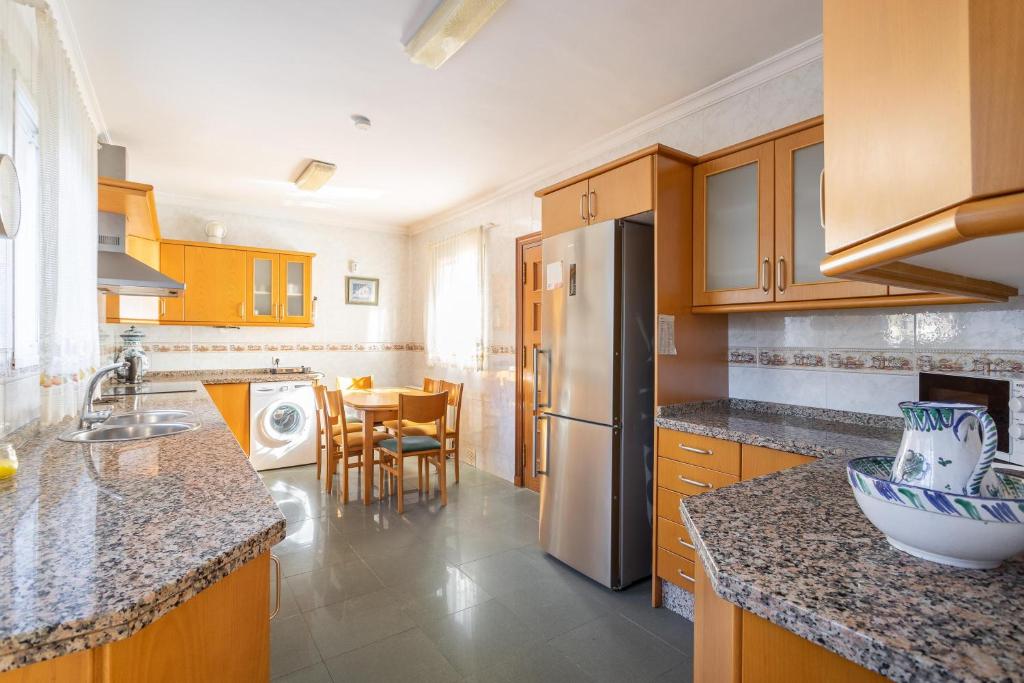 The house is very large, it is perfect for a large family. It has 6 bedrooms, a satellite TV, an equipped kitchen with a dishwasher and a microwave, a washing machine, and 3 bathrooms with a shower.