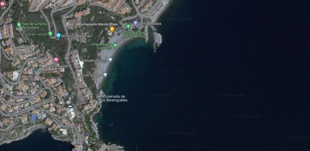 La Playa Berengueles se encuentra entre la Punta de Mona y la Marina del Este y a pesar de su escasa longitud de tal solo 100 metros es una de las calas más populares que se encuentra en Marina del Este.