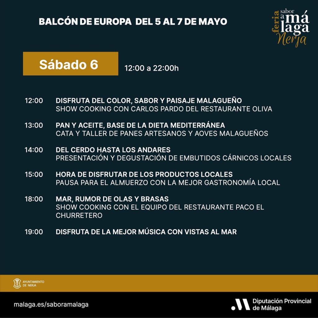 ¡Ya tenemos disponible el programa de la Feria #SaboraMálaga de #Nerja! Con muchas actividades, catas, degustaciones… y más de una treintena de productores locales. Os esperamos desde el viernes hasta el domingo en el Balcón de Europa 😁💙