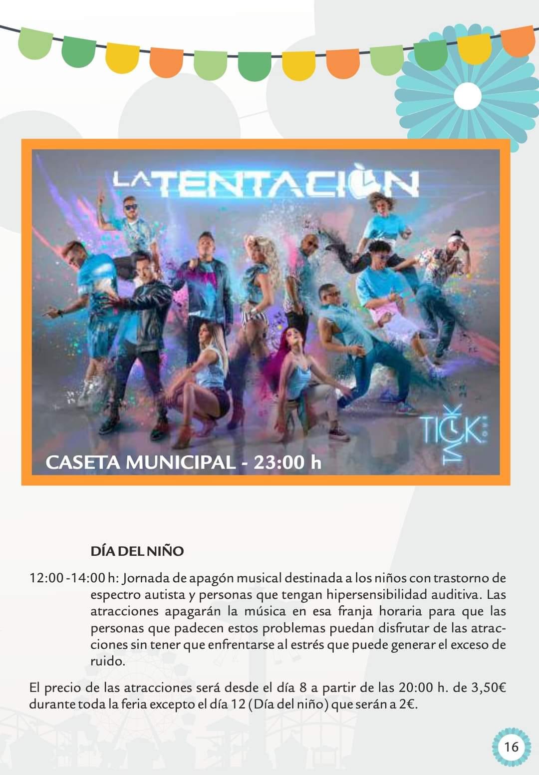 - Atracciones infantiles: Se instalarán atracciones y juegos pensados especialmente para los más pequeños en el recinto ferial.