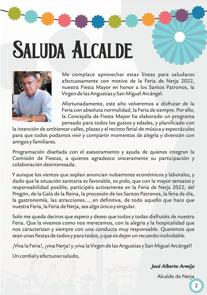 Ángela Díaz, teniente de alcalde de Nerja, y Elena Gálvez, concejala de Fiesta Mayor, han invitado a todos los nerjeños, residentes de las localidades vecinas y visitantes a vivir la Feria como solo Nerja sabe hacerlo. La Feria no solo es una fiesta local, sino un punto de encuentro para personas de todas partes, que podrán disfrutar de una gran variedad de actividades, espectáculos y la cálida hospitalidad que caracteriza a Nerja.