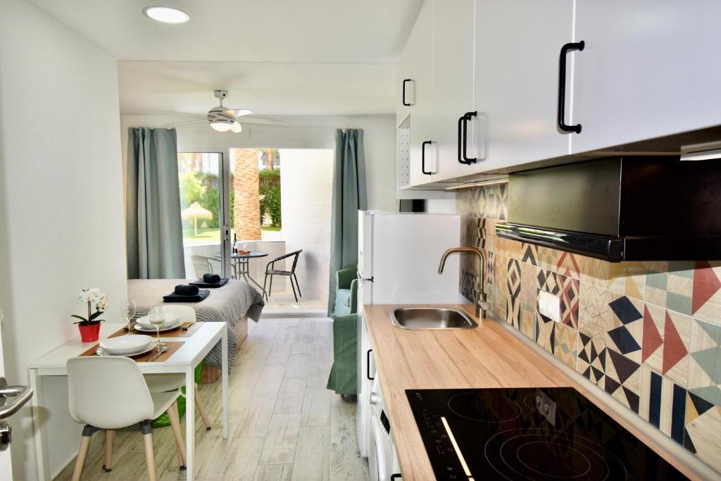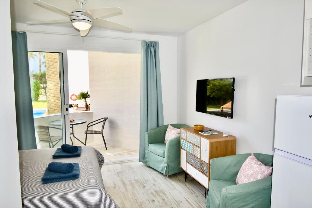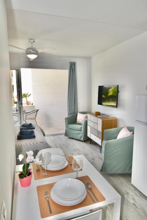 This beautiful studio has free WiFi, air conditioning, a seasonal outdoor pool and a garden. It offers views of the garden and the city. The apartment is 400 meters from Caletilla Beach.