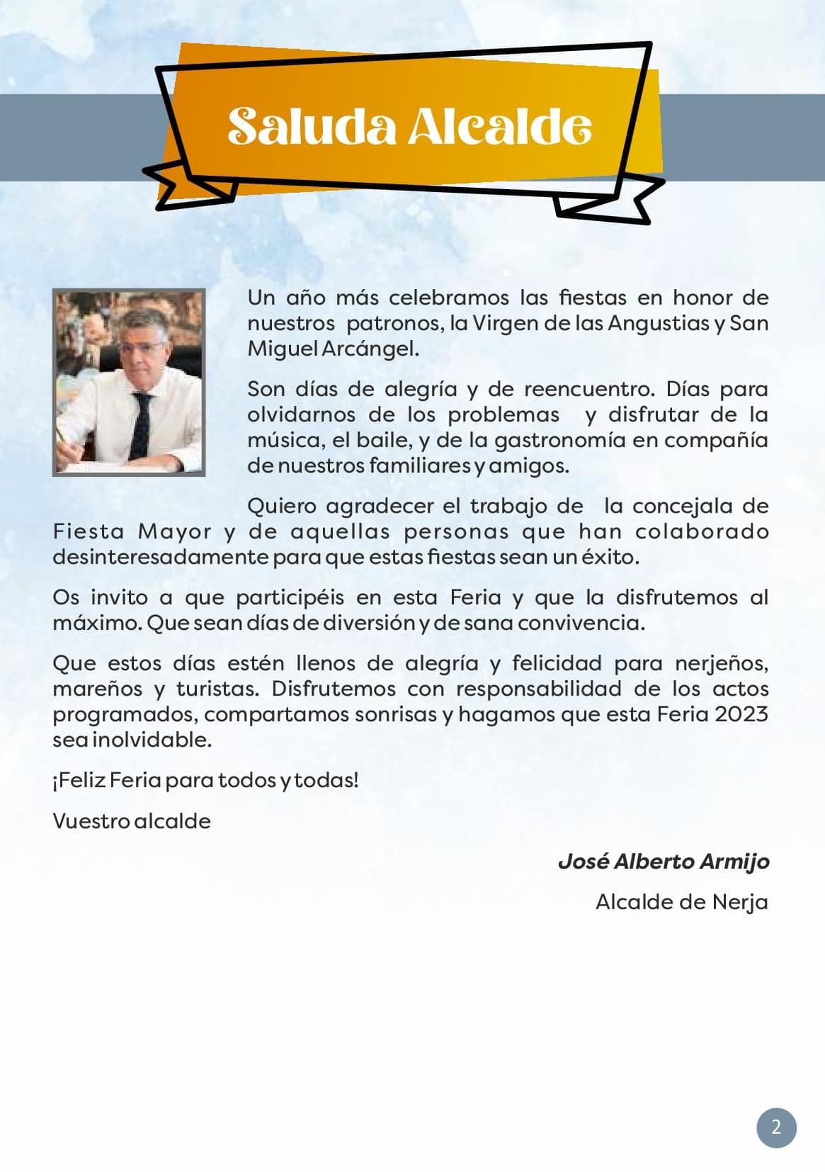 The Nerja Fair. The biggest festival in Nerja. 5 days of parties and fun with all kinds of activities. The Nerja Fair begins on October 7, 2023 and ends on October 12, 2023.